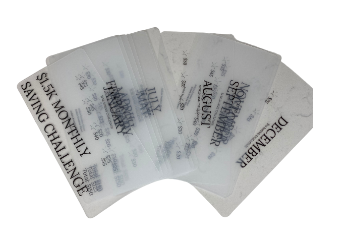 Start your savings journey with intention and consistency. This $1.5K Monthly Saving Challenge includes 12 monthly challenge cards (January–December) designed to help you save a total of $1,500 over the course of the year.