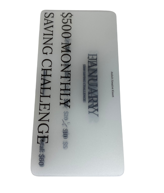 Start your savings journey with intention and consistency. This $500 Monthly Saving Challenge includes 12 monthly challenge cards (January–December) designed to help you save a total of $500 over the course of the year.
