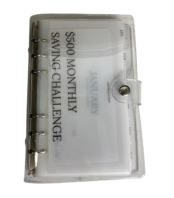 A clear and easy-to-use monthly tracker that guides you step-by-step toward saving $500 in 12 months.