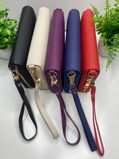 Elevate your everyday style with our sleek buckle-zipper wallet, made from 100% eco-friendly PU vegan leather. Designed with 12 card slots, 2 spacious big pockets, and a secure inner zipper pocket, it’s perfect for keeping your cash, cards, and essentials organized. The optional wristlet strap adds convenience for on-the-go use. Available in Black, Pale Oak, Navy, Red, and Purple.