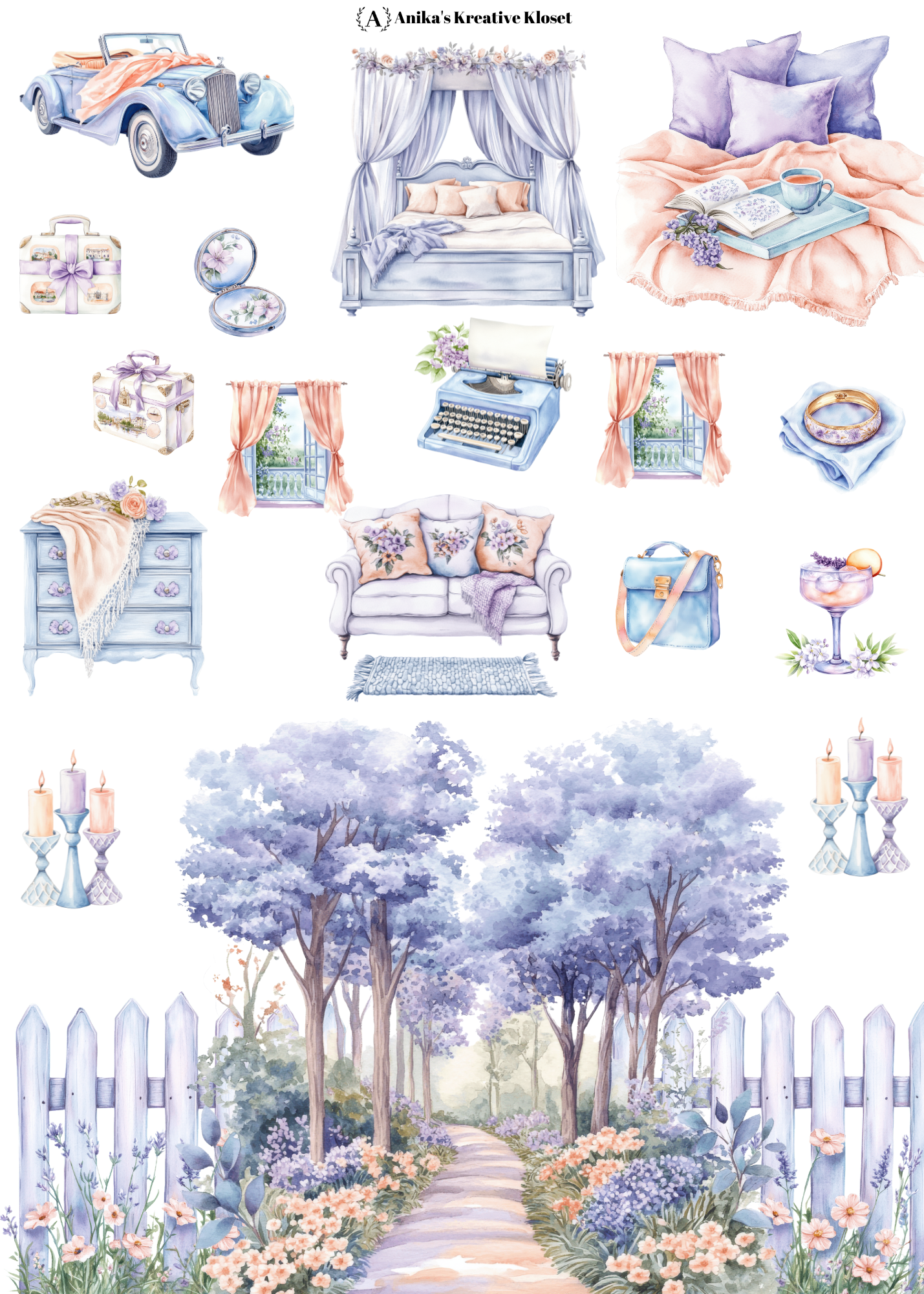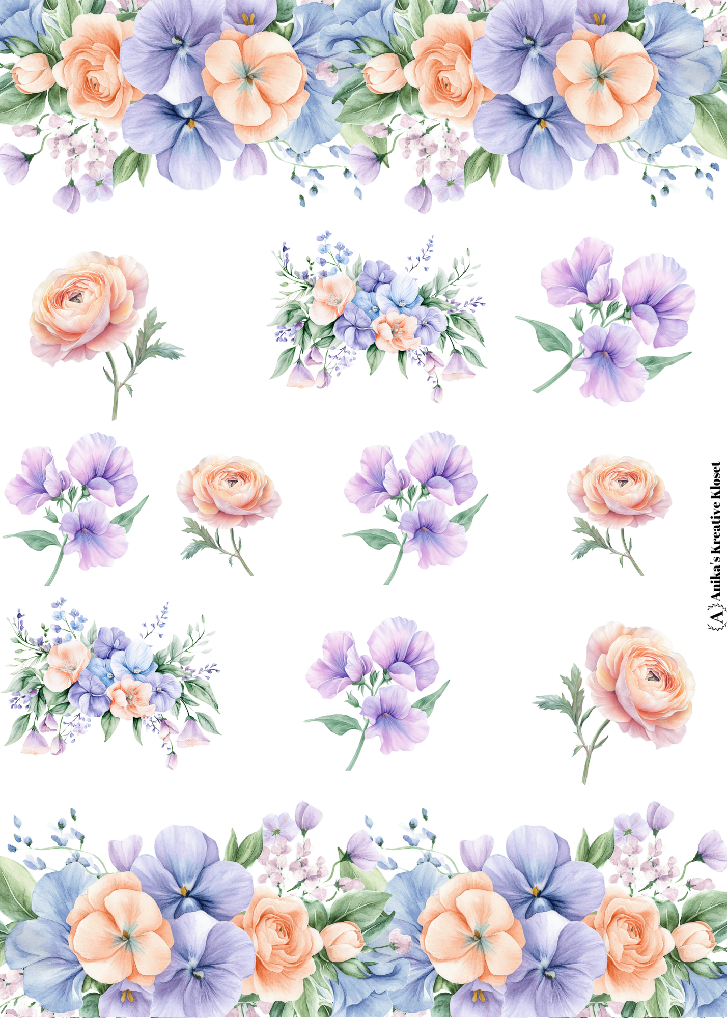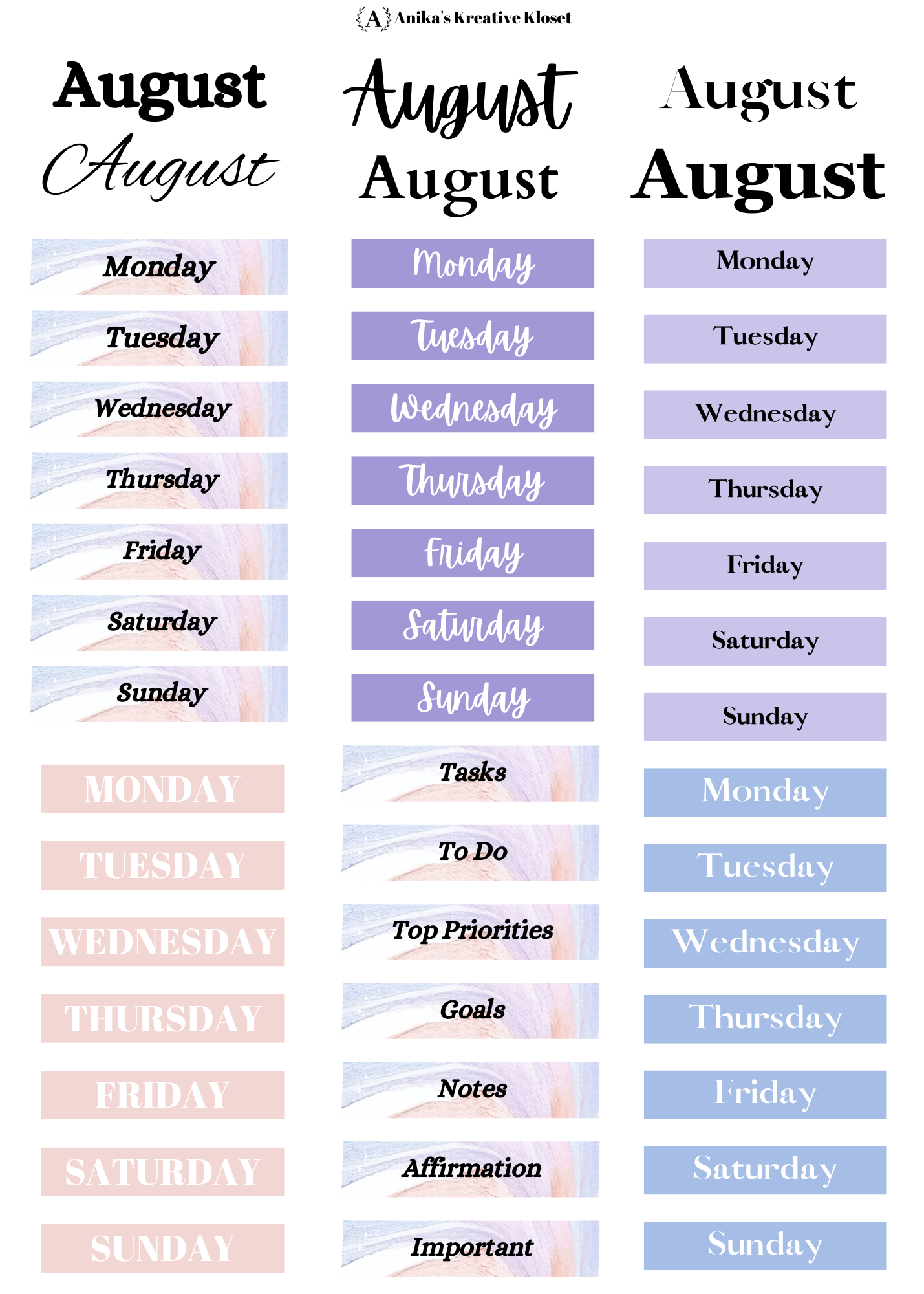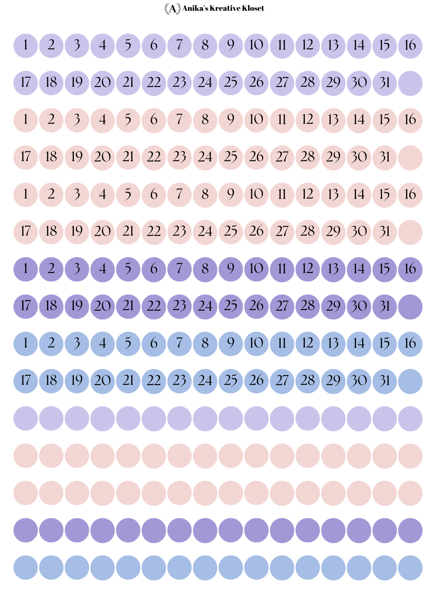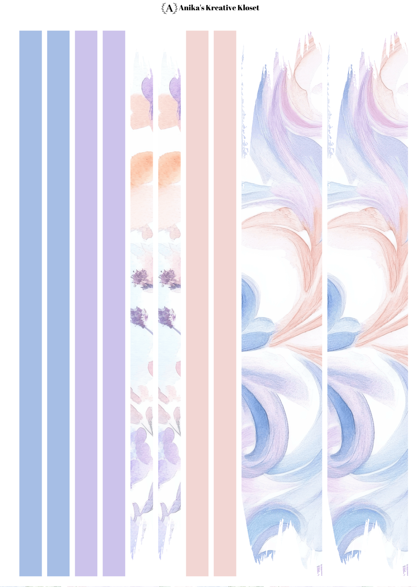 16 pages on washi sticker paper featuring deco sheets, date dots, functional boxes, functional dots, 6 weeks of days-of-the-week headers, florals, washi strips, and more!