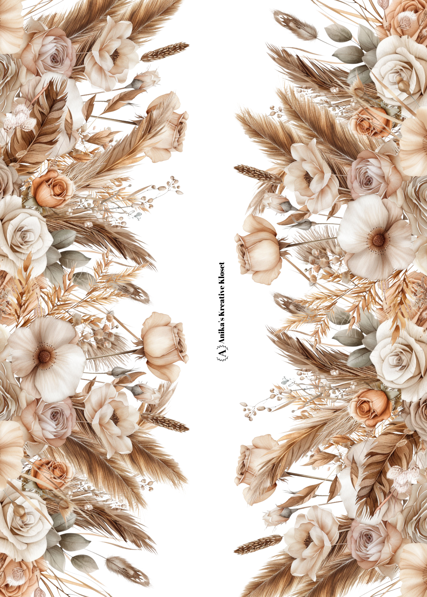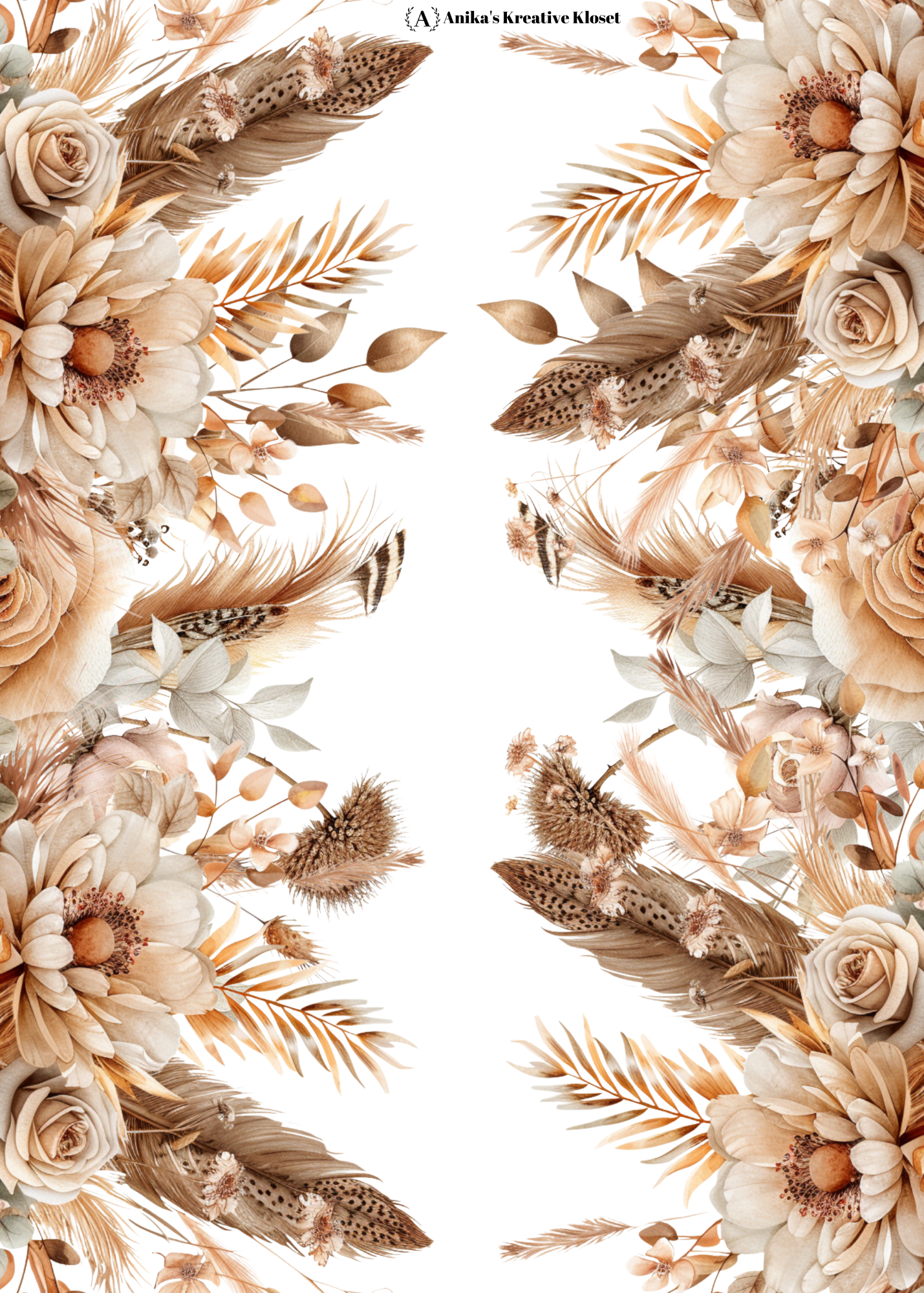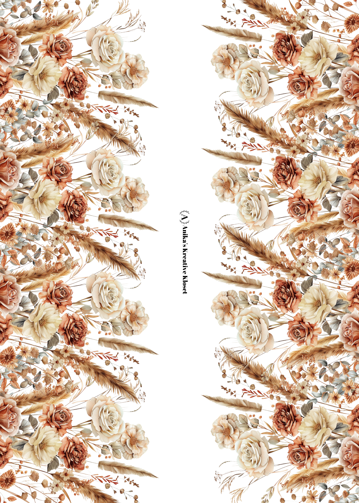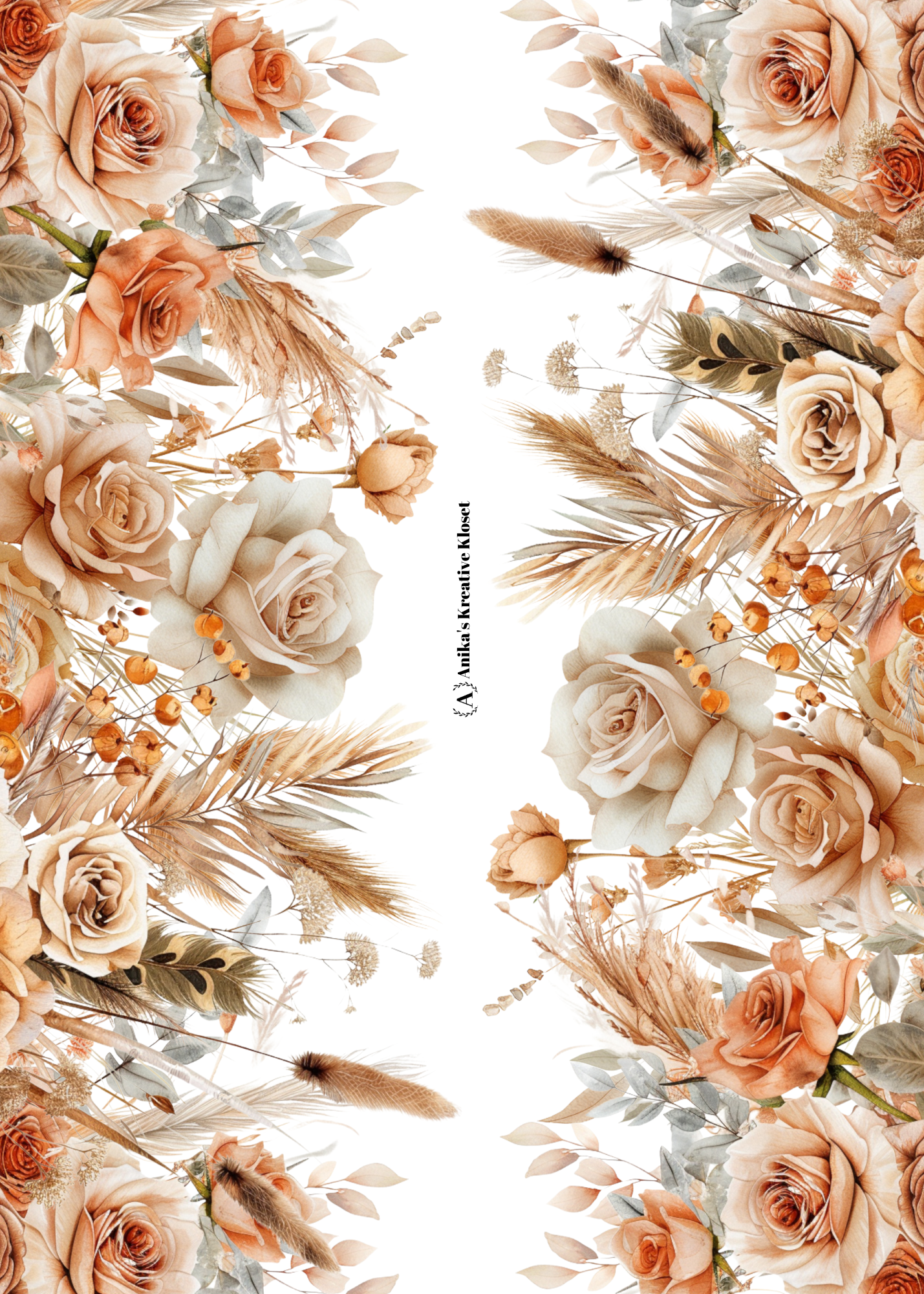 Boho Florals – A breathtaking blend of vibrant, artistic blooms available in PET sticker paper for a sleek, clear finish and washi sticker paper for a soft, textured touch.