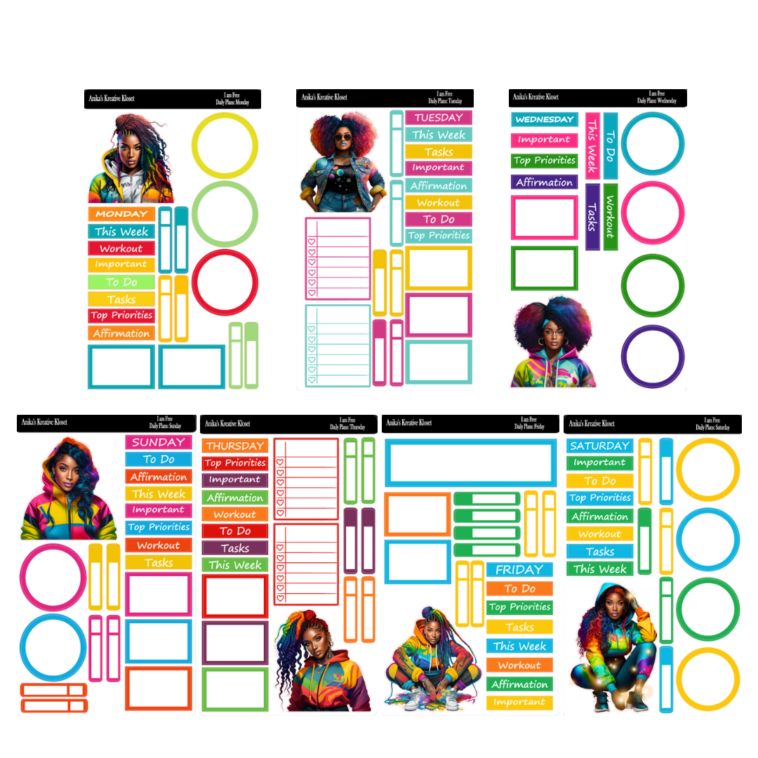 Daily Plan Sticker Kit: I am Free: Color-Coded Girls