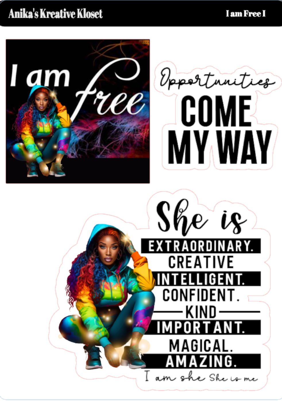 I am Free:Color-Coded Girl Motivational Sticker