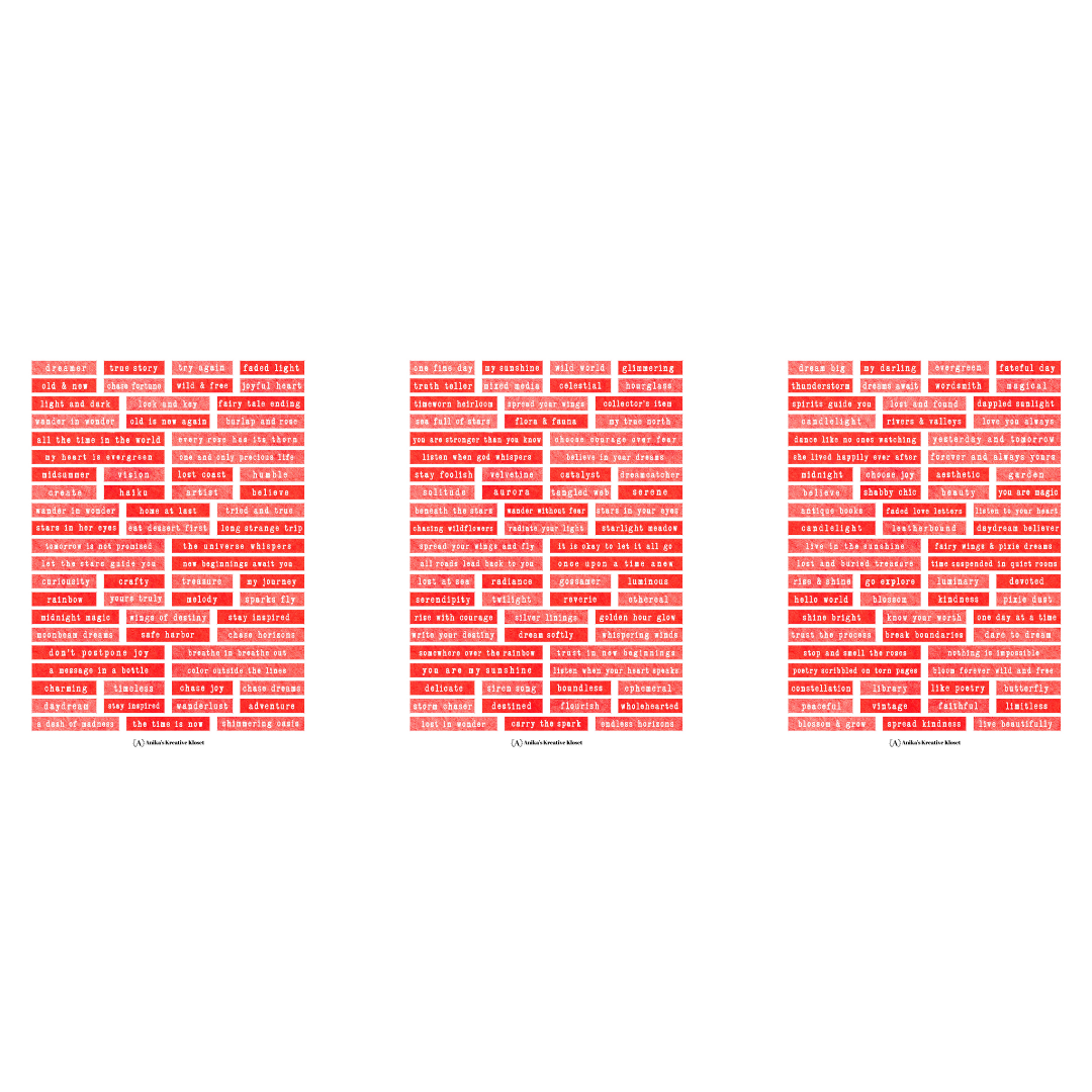 These journaling word strips are designed to inspire reflection, creativity, and intention in your journaling journey. Available in 11 color themes, each set includes 3 unique sheets per color, featuring a variety of empowering and thoughtful phrases. Perfect for journals, junk journals, and planners, these stickers come in matte paper, washi paper, and transparent sticker paper, making them a versatile addition to your creative routine.