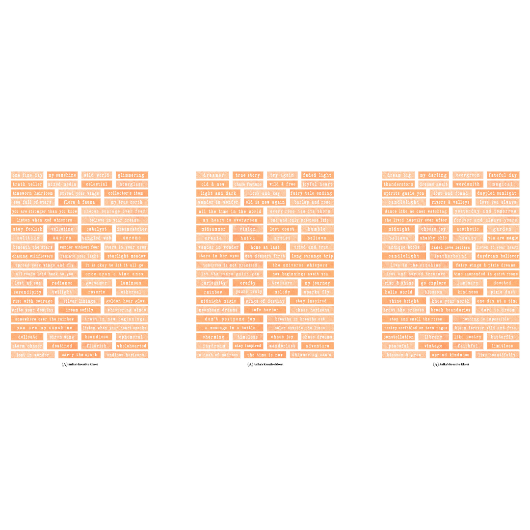 These journaling word strips are designed to inspire reflection, creativity, and intention in your journaling journey. Available in 11 color themes, each set includes 3 unique sheets per color, featuring a variety of empowering and thoughtful phrases. Perfect for journals, junk journals, and planners, these stickers come in matte paper, washi paper, and transparent sticker paper, making them a versatile addition to your creative routine.