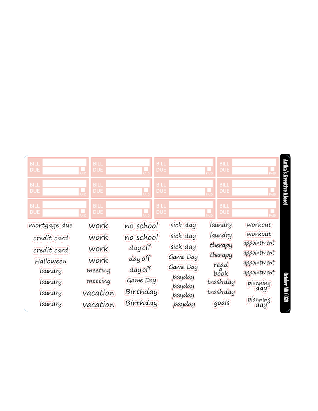 The sticker varies in size but is perfect for all planner sizes. All pictures may vary due to monitor differences, actual colors may vary slightly from what appears online.
