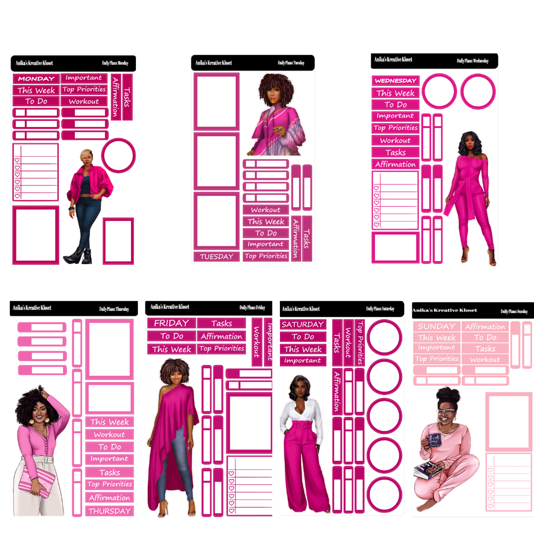 Shades of Pink II Daily Plan Stickers